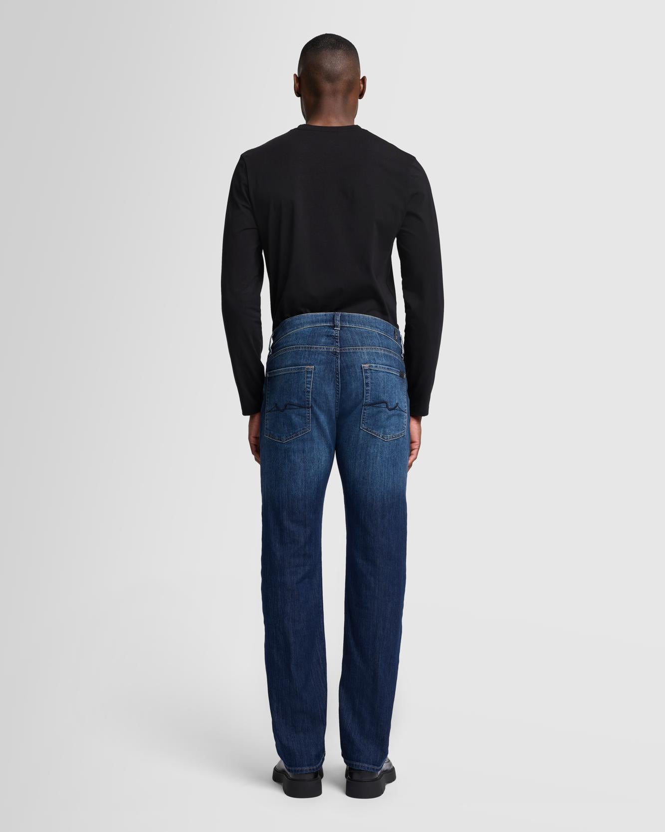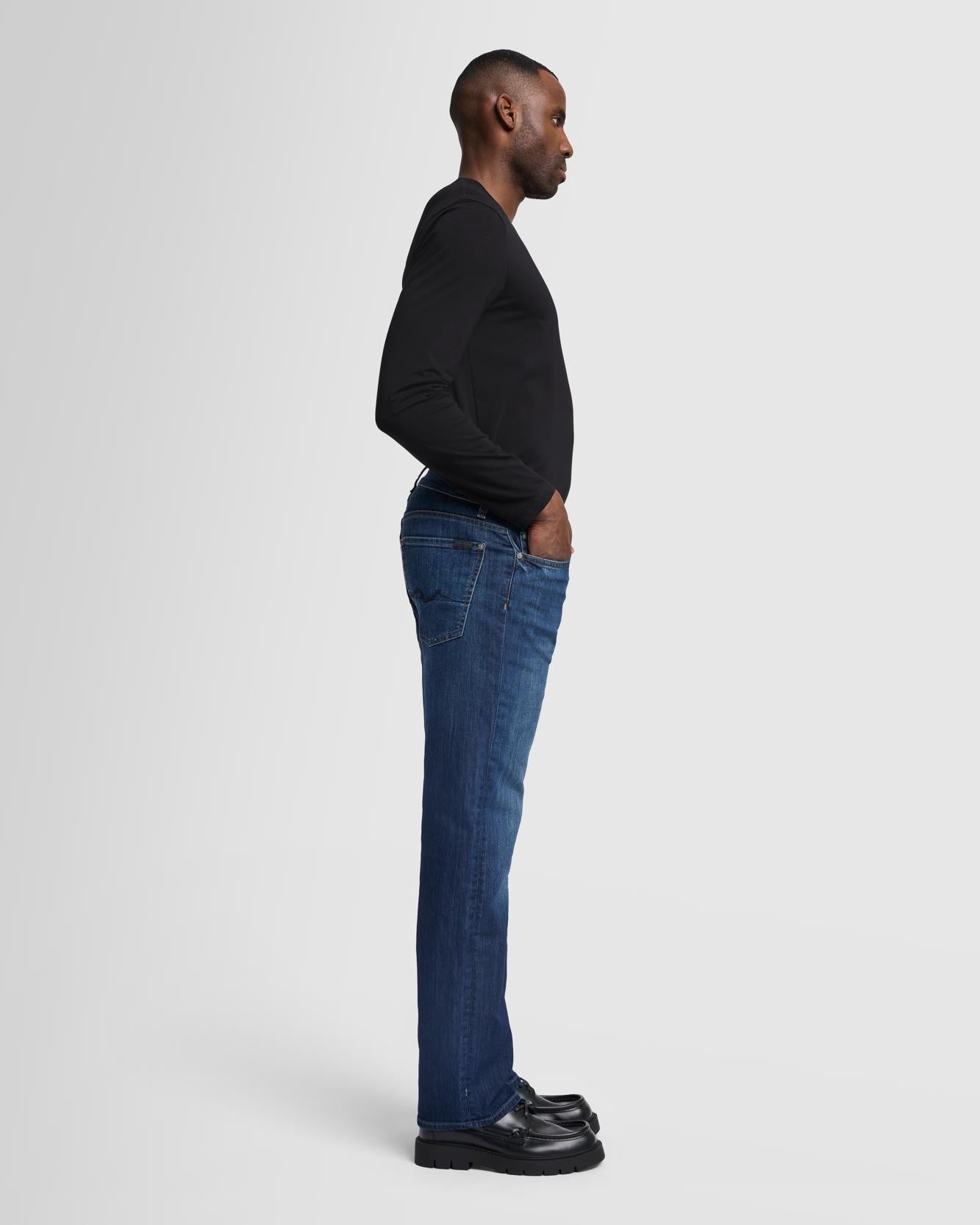 Crafted from our Japanese stretch denim for a soft feel and flexible stretch, this pair is roomy through the hip and thigh, with a relaxed leg opening for extra comfort. This men's jean features a deep indigo wash with gentle fading to give you infinite outfitting options.