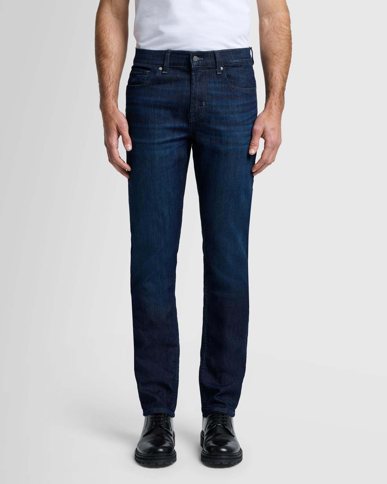 Our popular Slimmy jean offers a modern slim fit from hip to hem, for a look that's streamlined but not too skinny. We crafted this pair of Japanese denim with our signature comfort stretch perfect for day to day wear. Finished in a dark wash punctuated by subtle whiskering and sanding down the thigh that creates a well-worn vibe to any pairing.