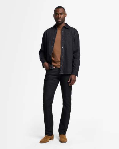 Our popular straight fit is crafted in Airweft denim, creating the ultimate lightweight jean that doesn't compromise on durability that is Japanese denim. Crafted in a black wash and subtle tonal threads.