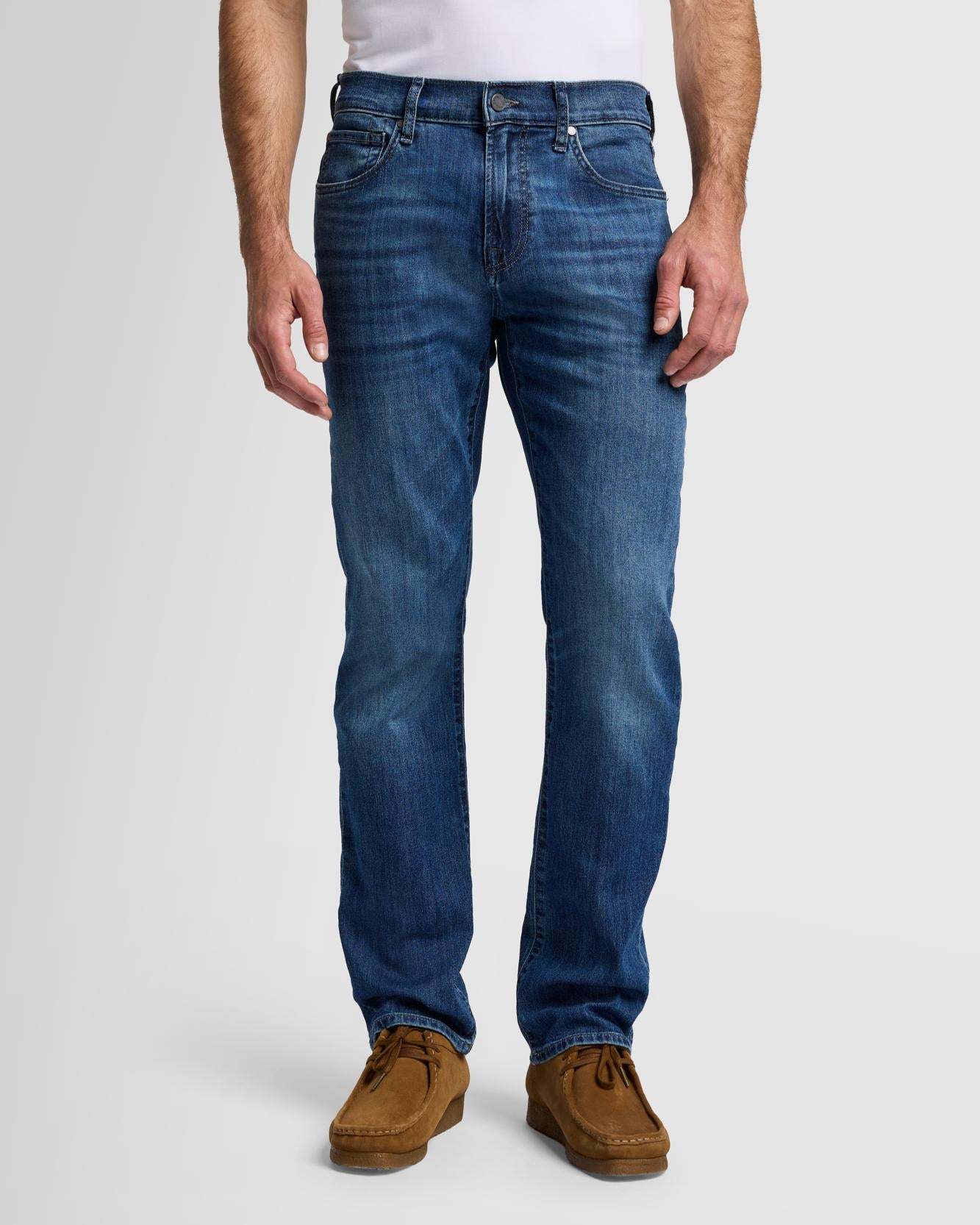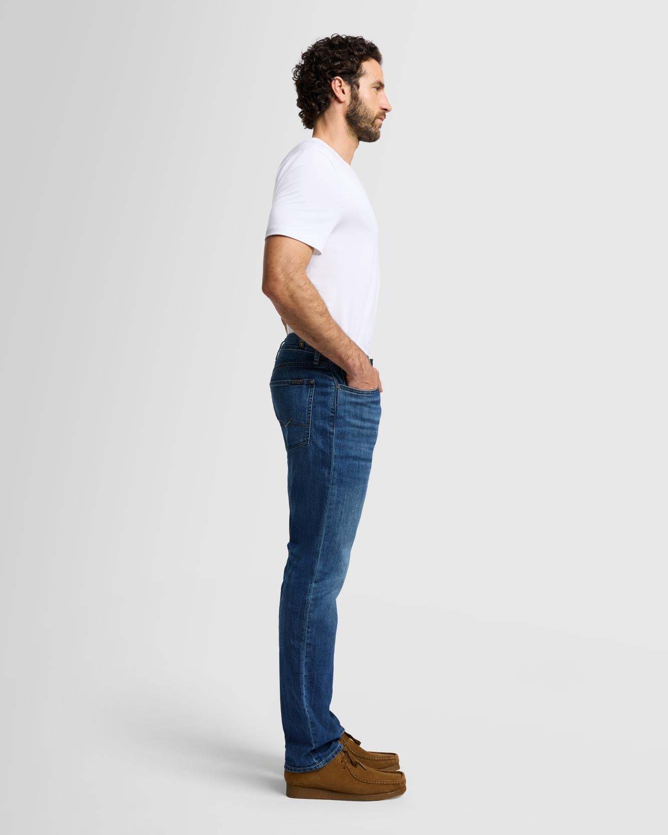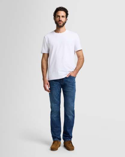 Our popular straight fit is crafted in Airweft denim, creating the ultimate lightweight jean that doesn't compromise on durability. Japanese denim is crafted in a medium indigo wash and punctuated with whiskering, a hand-sanded finish down the front and clean back pockets. Pair with a button down for elevated casual style.
