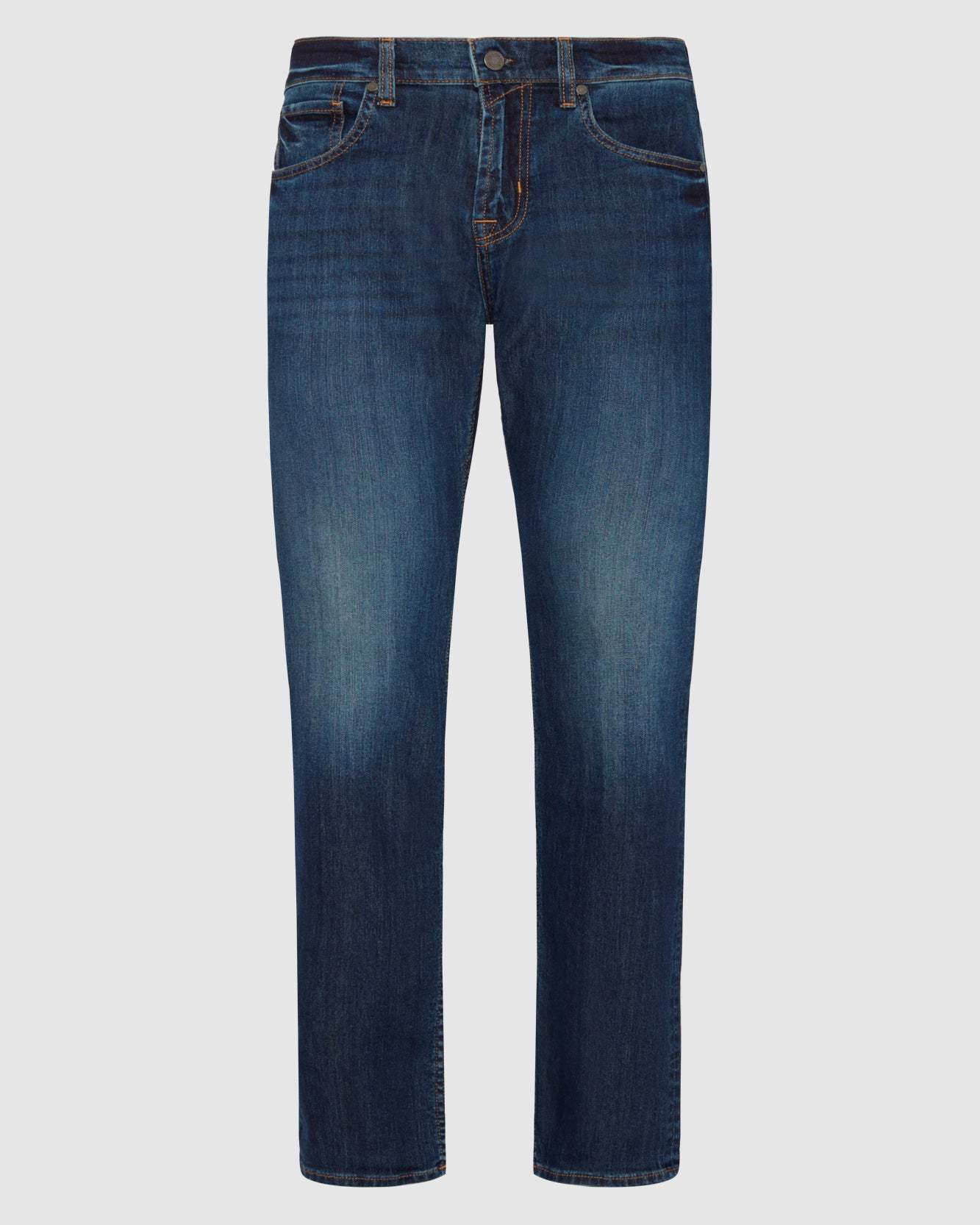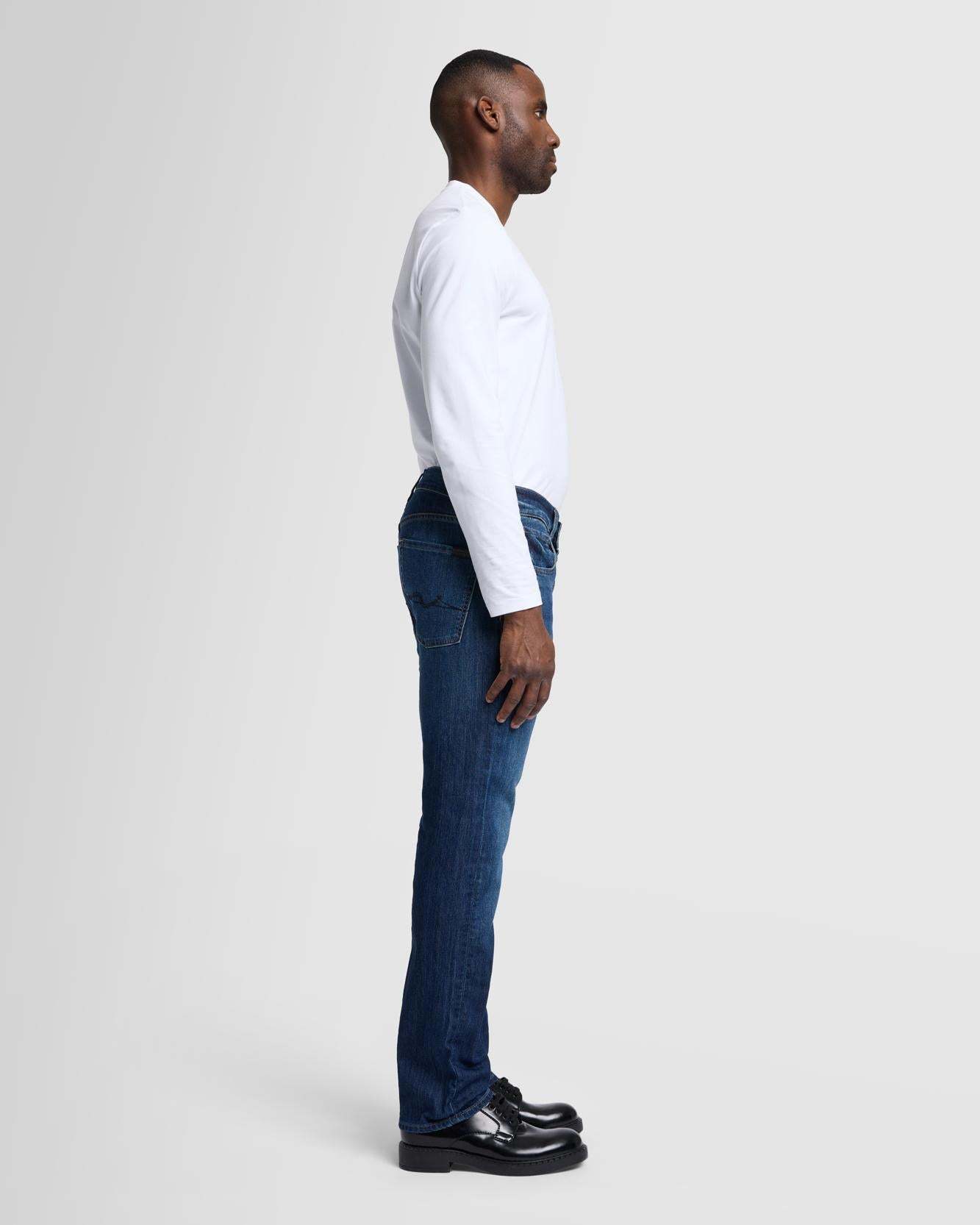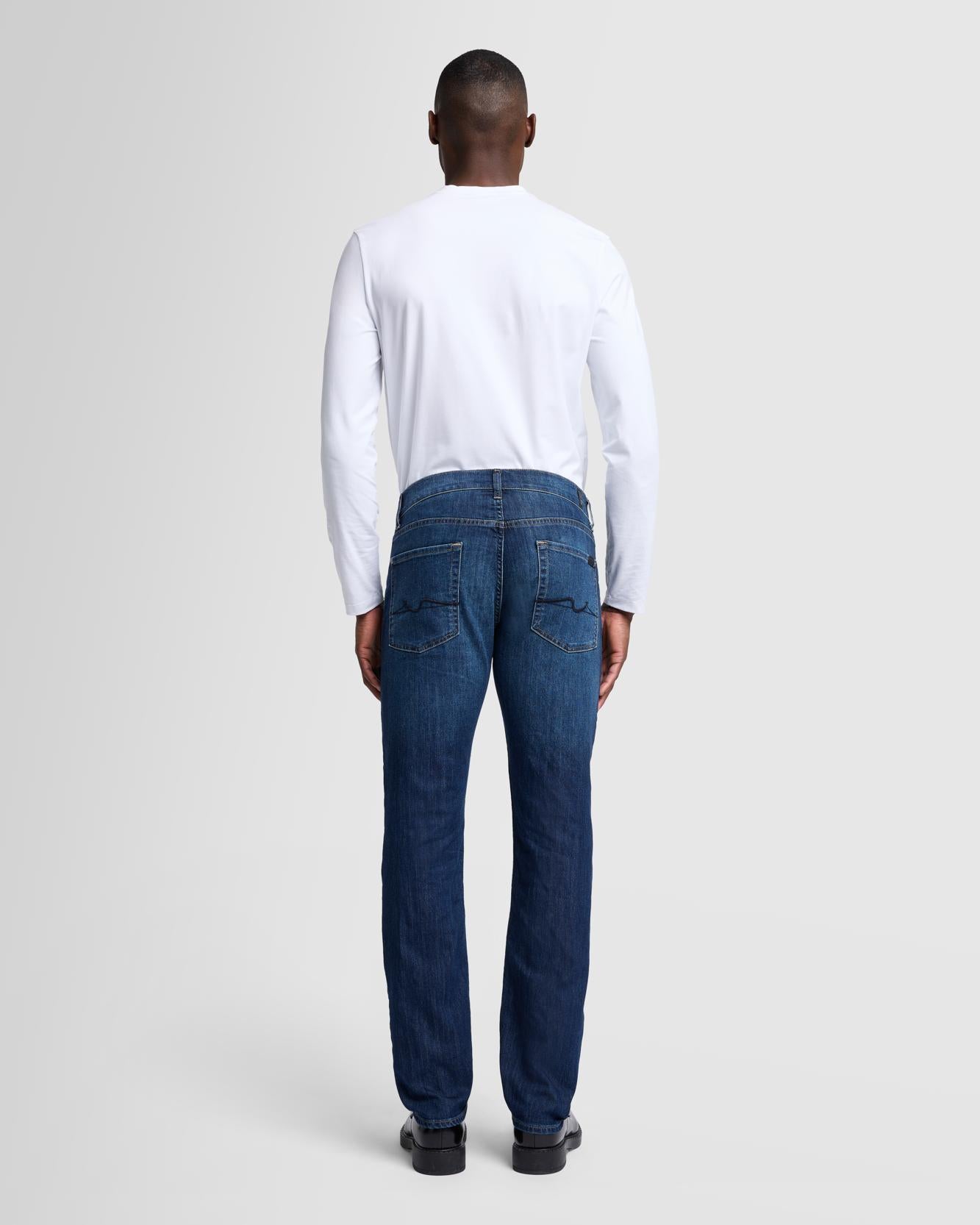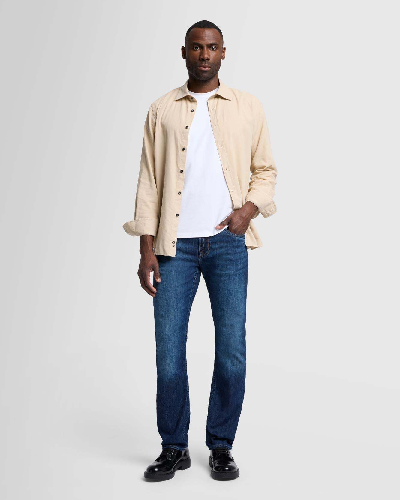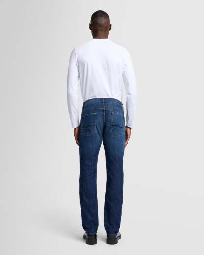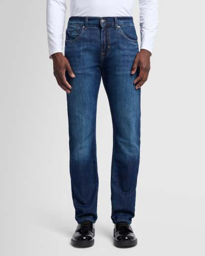 An easy, straight fit with a polished look. This men's jean is crafted from our Japanese stretch denim that offers a soft feel and flexible stretch. This signature pair offers infinite wear in a deep indigo wash with gentle fading and signature squiggle pocket embroidery.