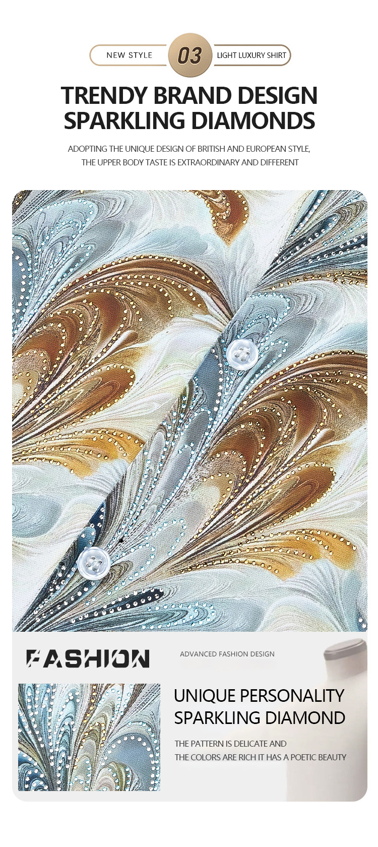 Dreamy Texture Rhinestone Sparkling Slim-Fit Shirt