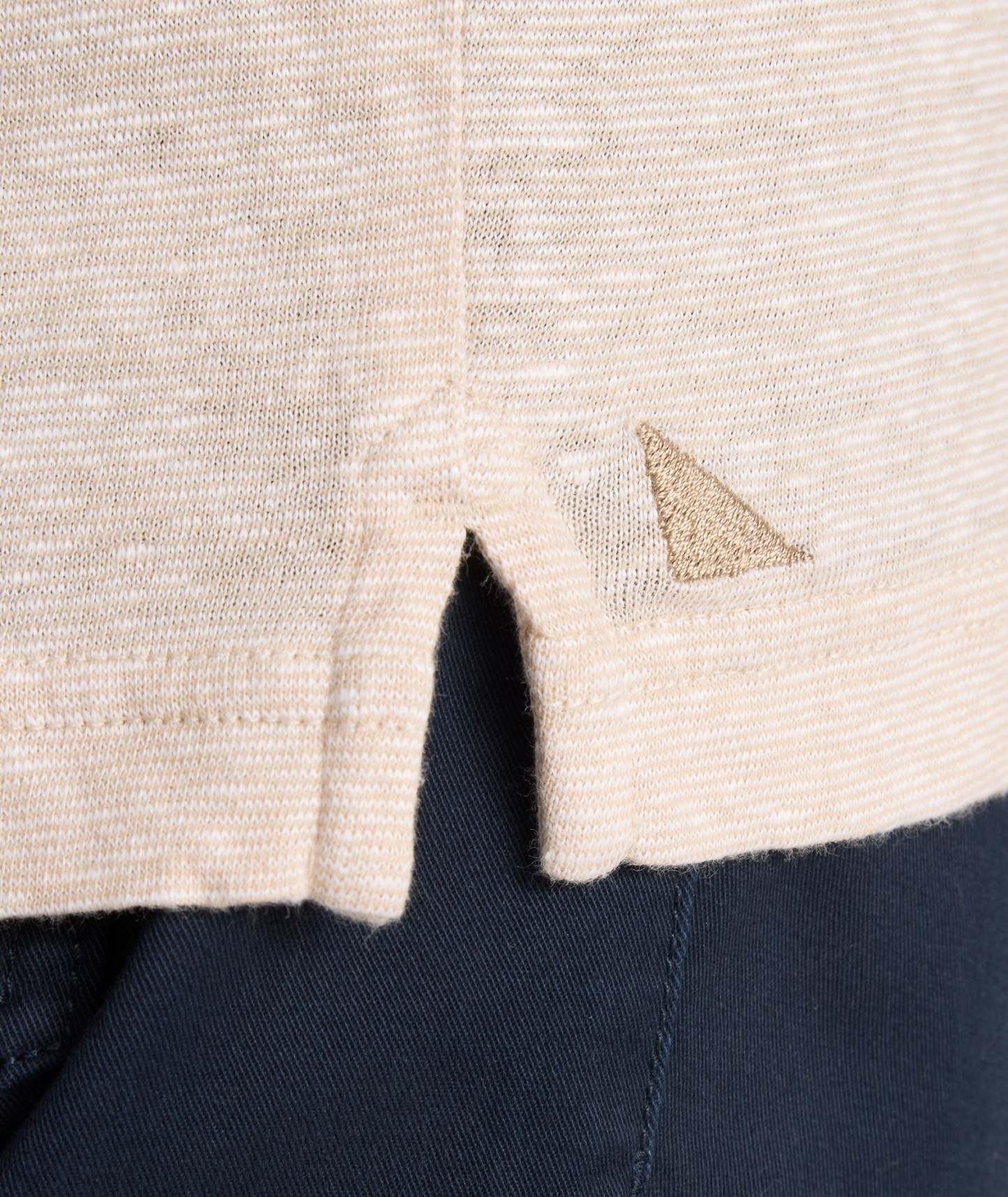 Add a dose of cool to your sunny-day wardrobe with this retro-inspired polo. Made from an unbelievably soft blend of classic cotton and lightweight linen, this style has a no-fuss, buttonless collar that’s timeless and effortless to wear. Plus, its subtle stripe and perfect untucked length make it easy to look sharp at a moment’s notice. Pair it with our 5-Pocket Chino Pants for any of your upcoming warm-weather occasions.