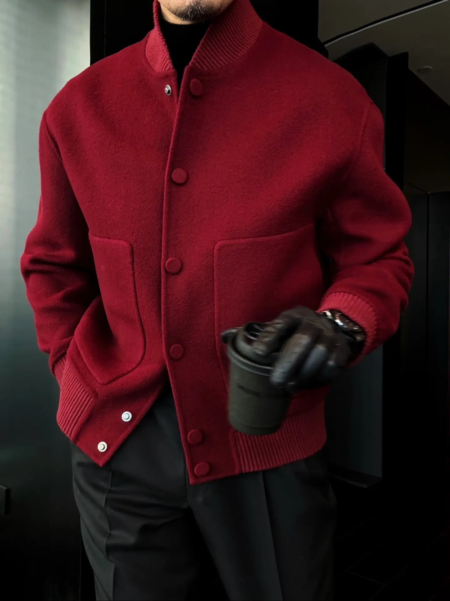 Men's Autumn & Winter Stand-Up Baseball Collar Solid Color Warm Jacket