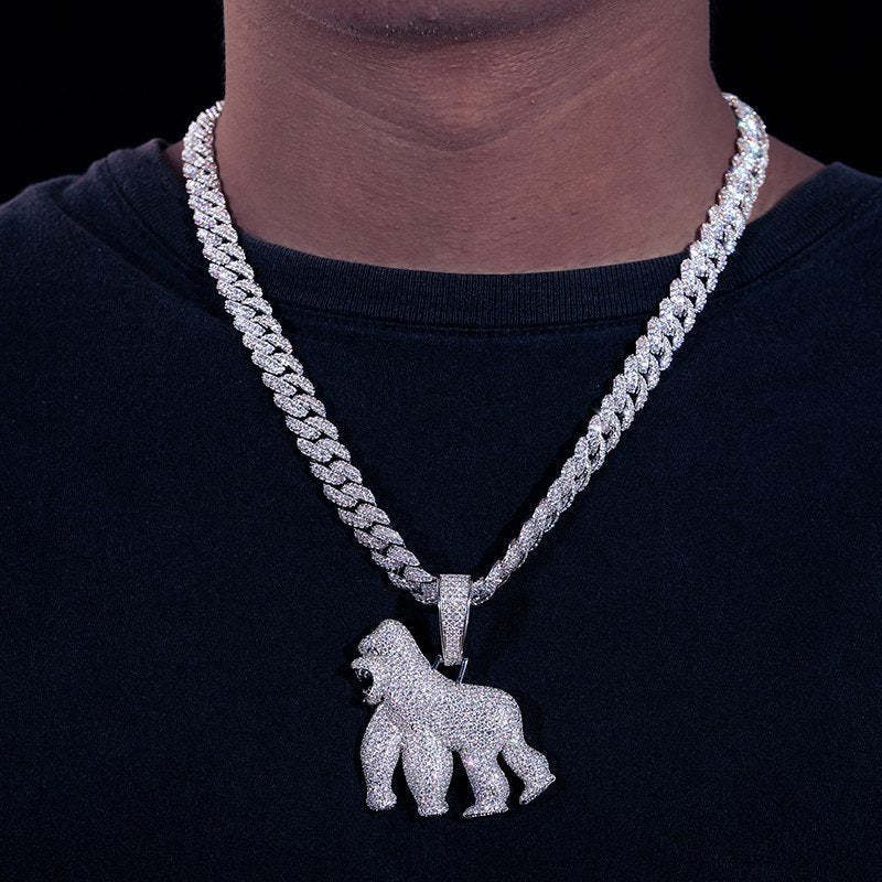 Take a walk on the wild side with our Micro Moissanite Chimpanzee Pendant! Crafted from high-quality 925 sterling silver and featuring hip hop styling, this pendant is perfect for those who like to take risks. The stunning Moissanite stone adds a touch of boldness to any outfit. Dare to be different with this adventurous piece!