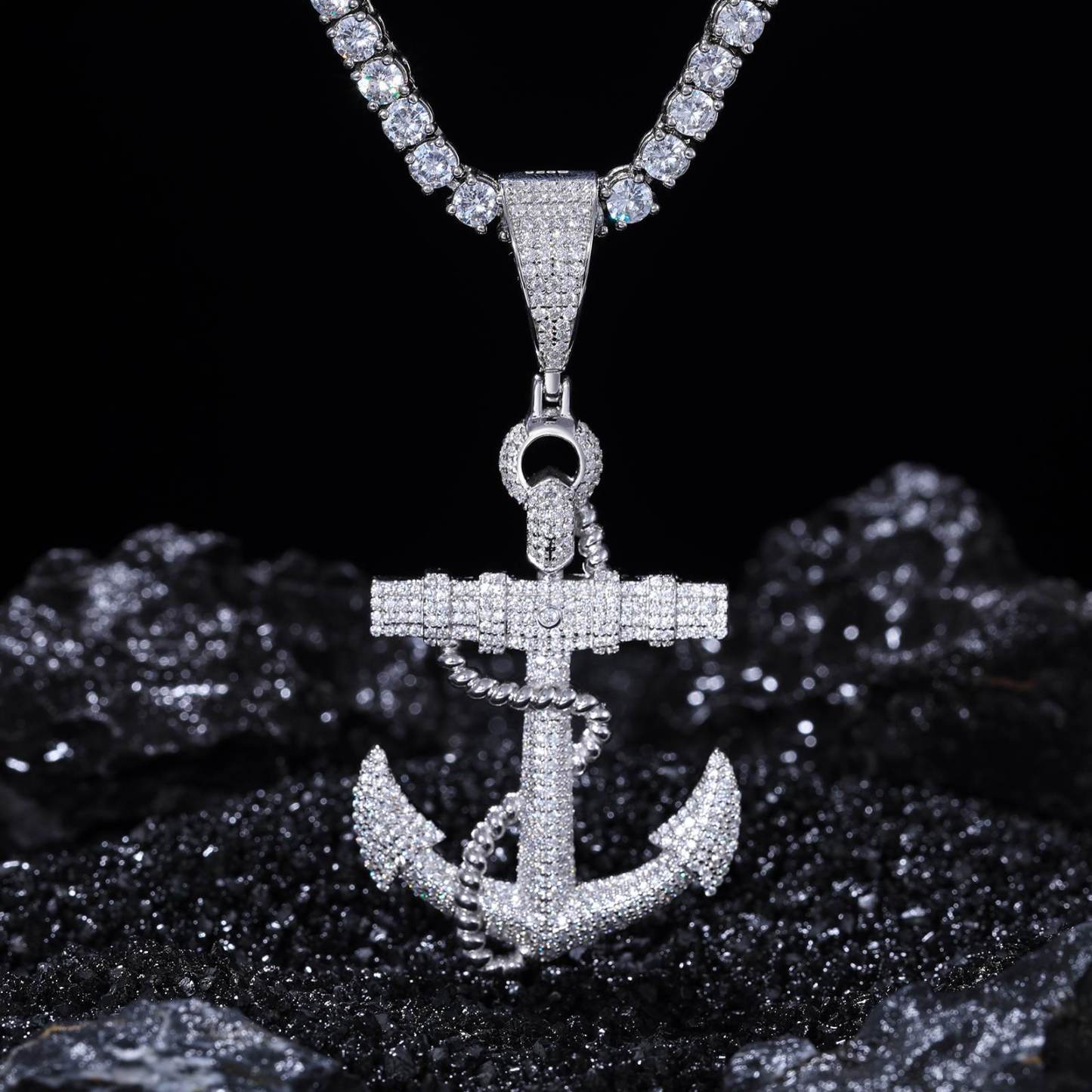 As an industry expert in the world of jewelry, we present to you our S925 Micro Moissanite Anchor Pendant. Crafted with 925 sterling silver and adorned with a stunning D Color VVS Clarify Moissanite, this pendant will surely pass any diamond tester. Its unique anchor design makes it a standout piece in the world of hip hop and rappers jewelry.