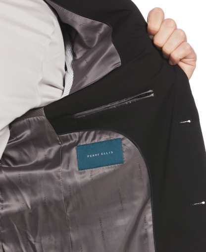 For a suave look that stands up to coffee spills, reach for this water-resistant Perry Ellis men’s suit jacket. A comfortable and practical blazer for men, it features performance stretch to help ensure a flexible fit. The jacket features a chest pocket and two flap-closed front pockets to keep important items close during business events. Novelty fabric adds eye-catching style to the design, while narrow notched lapels provide a classic finishing touch.