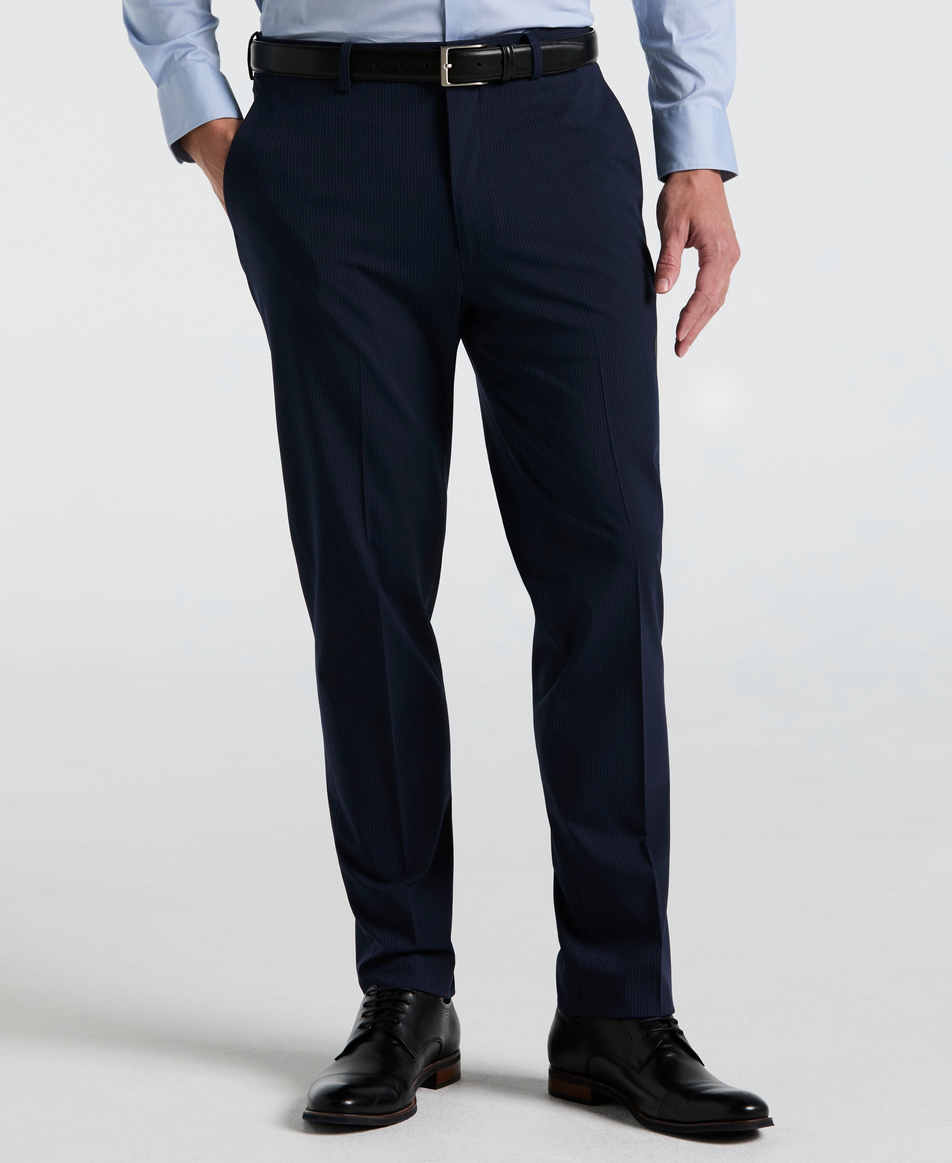 Make an impression at your next formal or professional event with these men's suit pants from Perry Ellis. Featuring a slim fit and dressy pinstripe design, these dress pants offer a clean, sophisticated look. Built for both fashion and function, these suit pants include stretch and a hidden tech pocket for a streamlined finish.