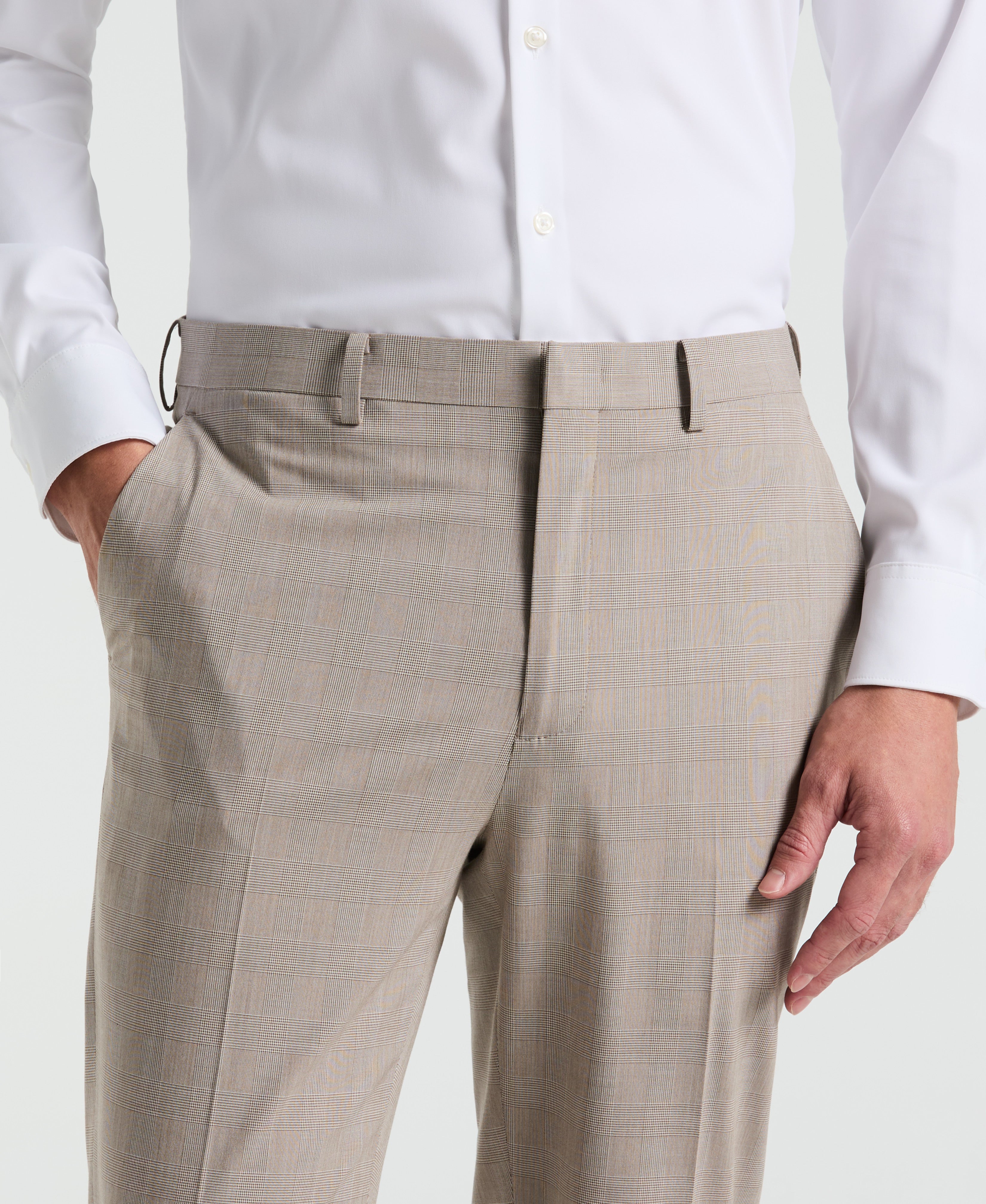 From business meetings to weddings to dinner parties and more, these Perry Ellis men's suit pants offer polished style. The classic plaid pattern gives these dress pants stylish flair that's never out of place. A slim fit design offers a sleek silhouette that includes a comfortable amount of stretch.