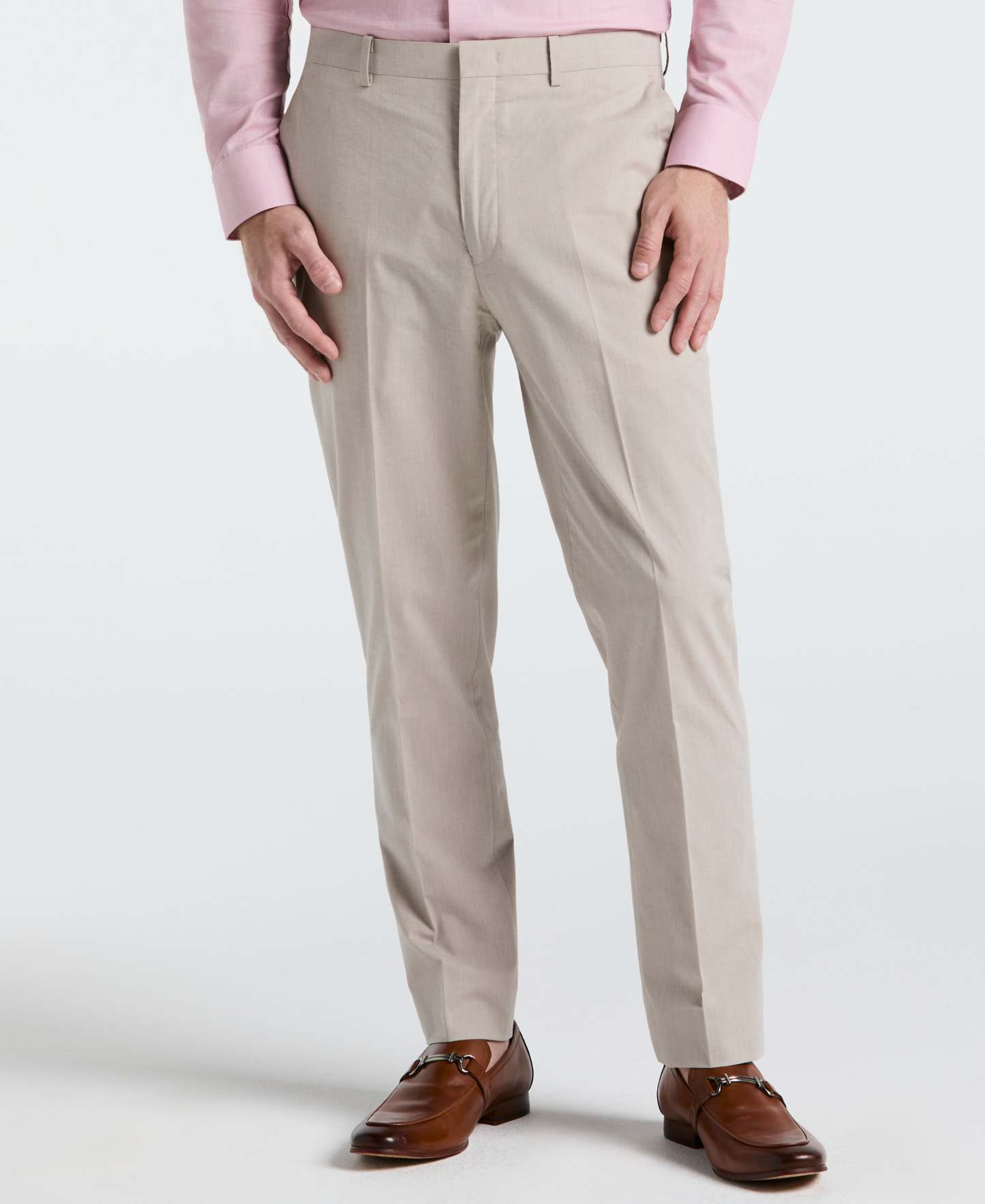 Stay polished in warm weather with these dress pants from Perry Ellis. Made from linen fabric, these men's suit pants are lightweight and breathable, making them the ideal choice for warm weather weddings, special events and more. These suit pants include a hint of stretch for added comfort.