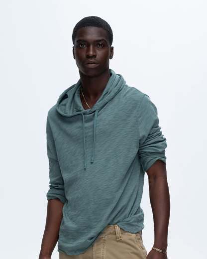 Slub Jersey Long Sleeve Destroyed Hoodie - Spring Eucalyptus